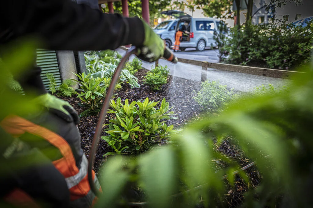 En välskött trädgård är lika viktig som en välskött byggnad. Vi håller gräset välklippt och ser till att träd och buskar beskärs och klipps. Gården ska också hållas ren och fasad och fönster likaså. Vi tar hand om bevattning och även nyplantering om så önskas. Dina behov bestämmer omfattningen.